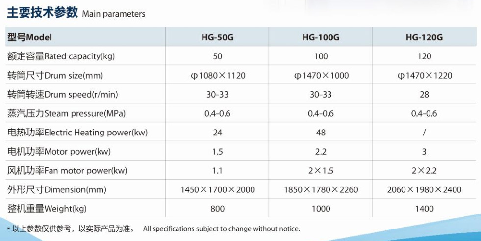 HG series drying machine''s drum was made by goodquality stainless steel, Drying time than traditional savenearly half, energy-efficient. it is a necessary equipmentin hotels, hospitals, garments factories, food industries.washing factories, textile and dyeing industries forcotton, silk, fiber drying.